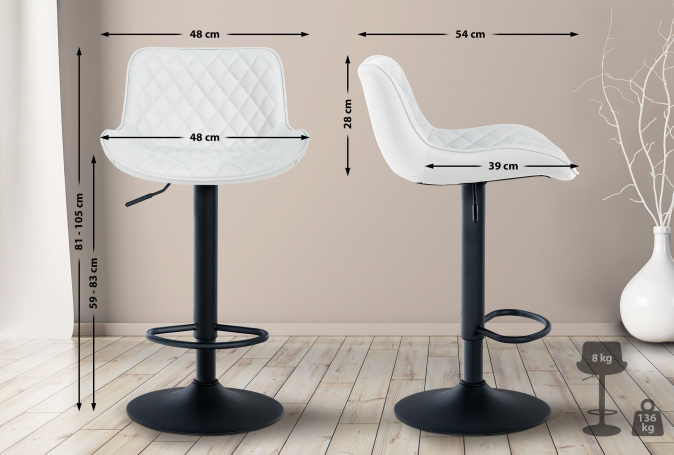 Barová židle Luxnos syntetická kůže, bílá | Bílá | 3 539 Kč