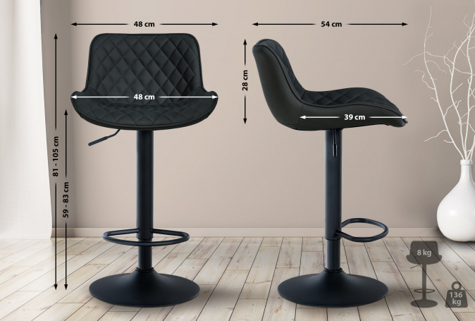 Barová židle Luxnos syntetická kůže, černá | Černá | 3 456 Kč