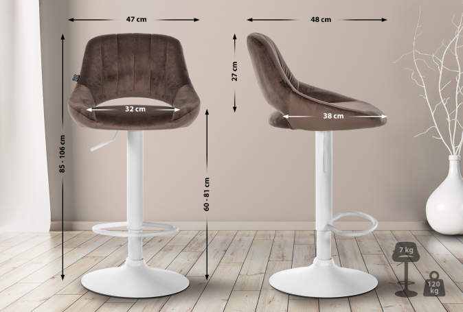 Barová židle Mile samet bílá, hnědá | Hnědá | 2 640 Kč