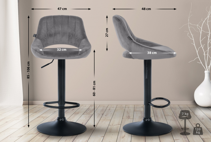 Barová židle Mile samet černá, tmavě šedá | Tmavě šedá | 2 508 Kč