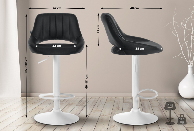 Barová židle Mile syntetická kůže, bílá, černá | Černá | 2 376 Kč