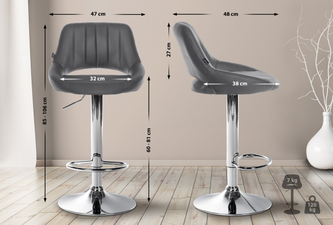 Barová židle Mile syntetická kůže, chrom, šedá | Šedá | 3 289 Kč