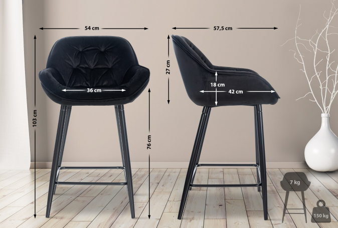 Barová židle bezpečně unese zatížení až 150 kg. Díky chráničům podlahy pod nohama židle nedochází k poškození citlivých podlah.