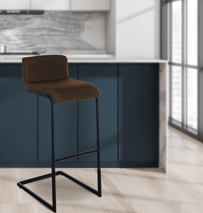 Barová židle Newport látkový potah, černá podnož, hnědá | Hnědá | 2 914 Kč