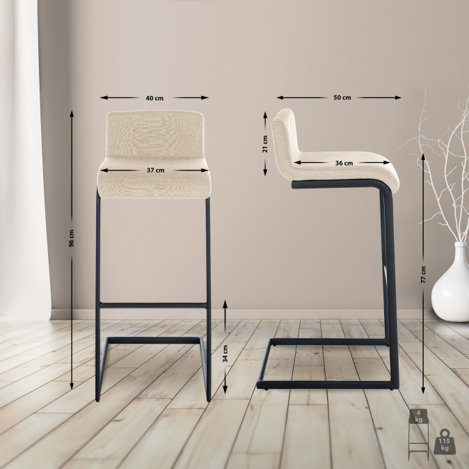 Barová židle Newport látkový potah, černá podnož, krémová | Krémová | 2 914 Kč
