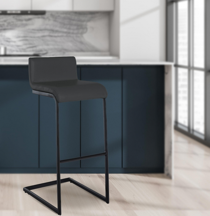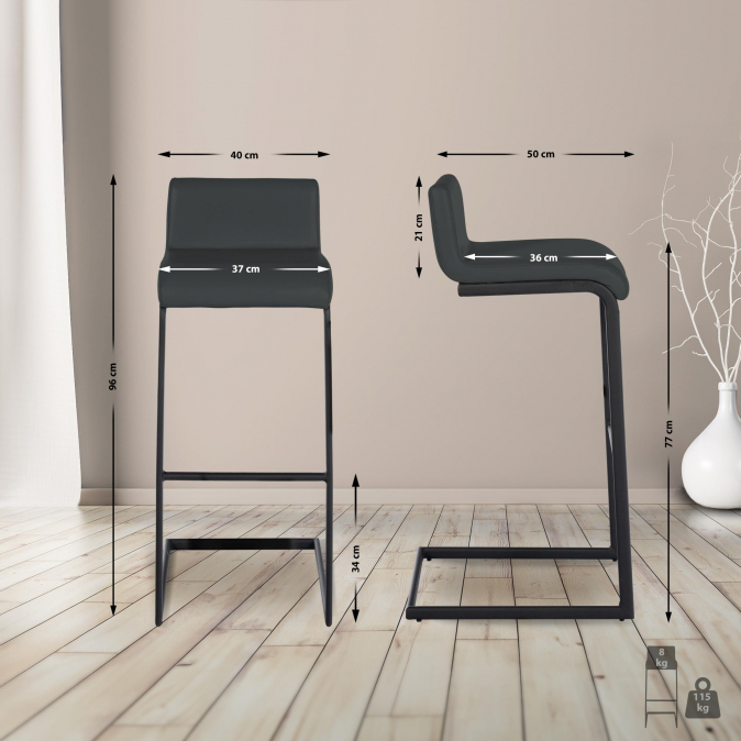 Barová židle Newport syntetická kůže, černá podnož, tmavě šedá | Tmavě šedá | 2 914 Kč