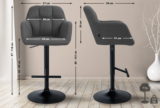 Barová židle Omaha látkový potah, černá, tmavě šedá | Tmavě šedá | 3 747 Kč