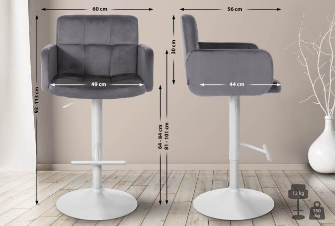 Barová židle Pompe samet bílá, tmavě šedá | Tmavě šedá | 4 790 Kč