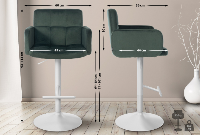 Barová židle Pompe samet bílá, tmavě zelená | Tmavě zelená | 4 790 Kč