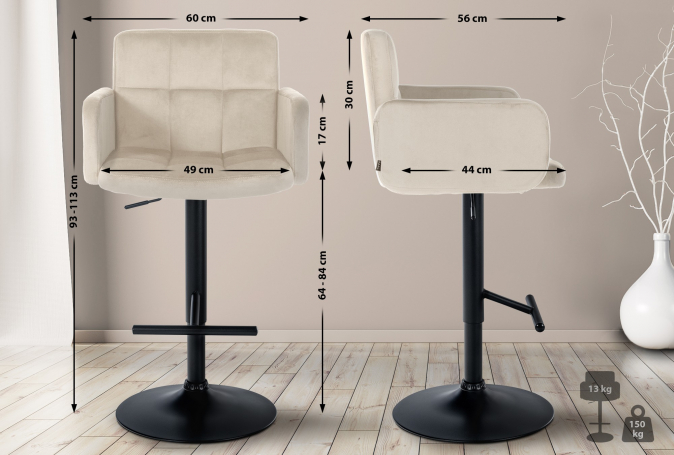 Barová židle Pompe samet černá, krémová | Krémová | 5 040 Kč