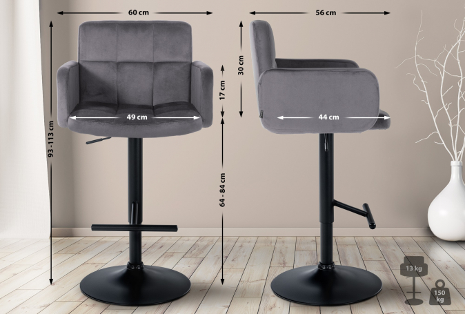 Barová židle Pompe samet černá, tmavě šedá | Tmavě šedá | 5 040 Kč