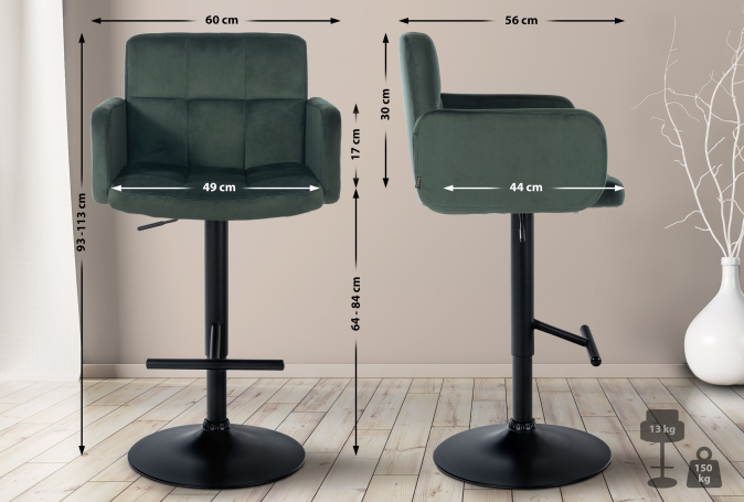 Barová židle Pompe samet černá, tmavě zelená | Tmavě zelená | 4 790 Kč