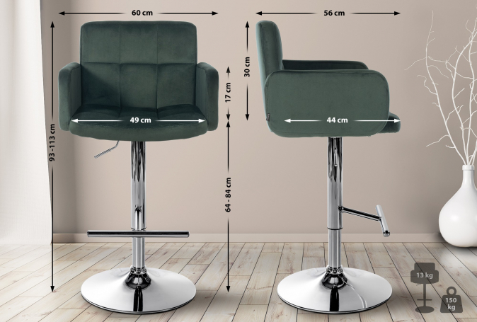 Barová židle Pompe samet chrom, tmavě zelená | Tmavě zelená | 5 290 Kč