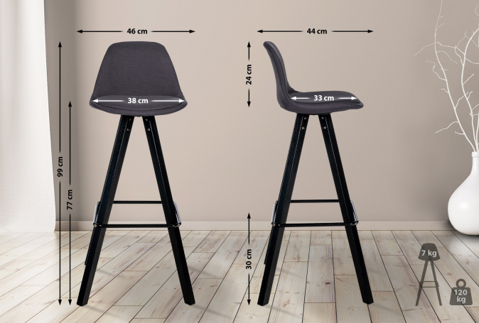 Barová židle Ronin látkový potah / podnož hranatá černá, tmavě šedá | Tmavě šedá | 2 247 Kč