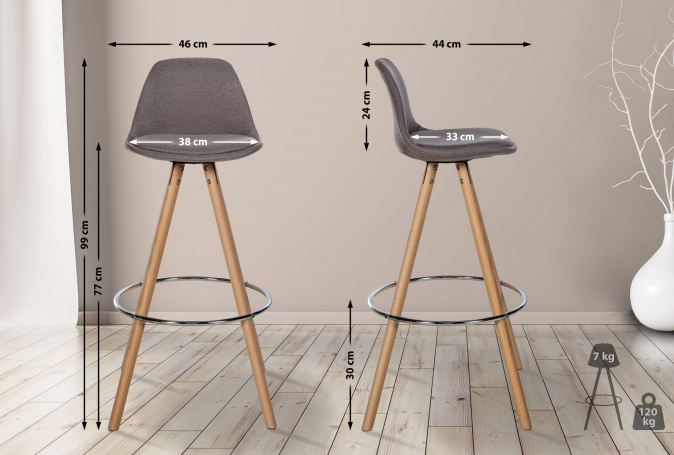 Barová židle Ronin látkový potah / podnož kulatá přírodní podnož / tmavě šedá | Tmavě šedá | 2 664 Kč