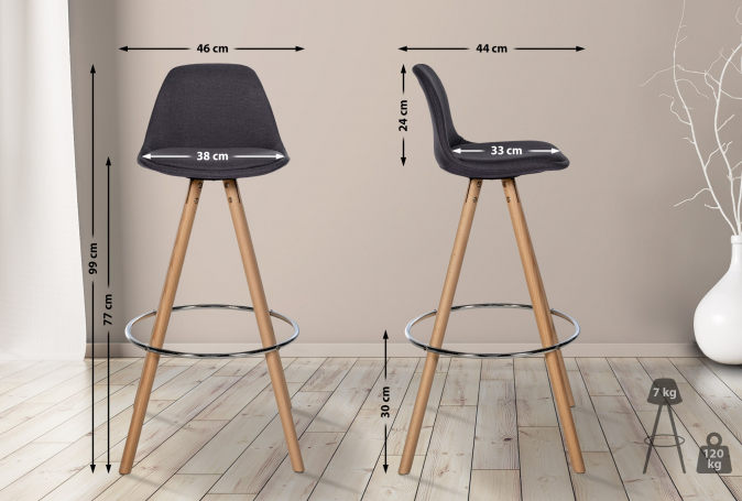Barová židle Ronin látkový potah / podnož kulatá přírodní podnož / tmavě šedá | Tmavě šedá | 2 664 Kč