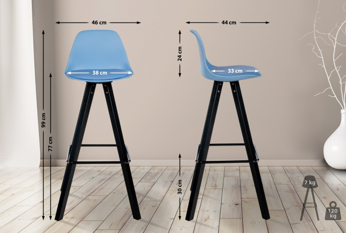 Barová židle Ronin syntetická kůže, / podnož hranatá černá, modrá