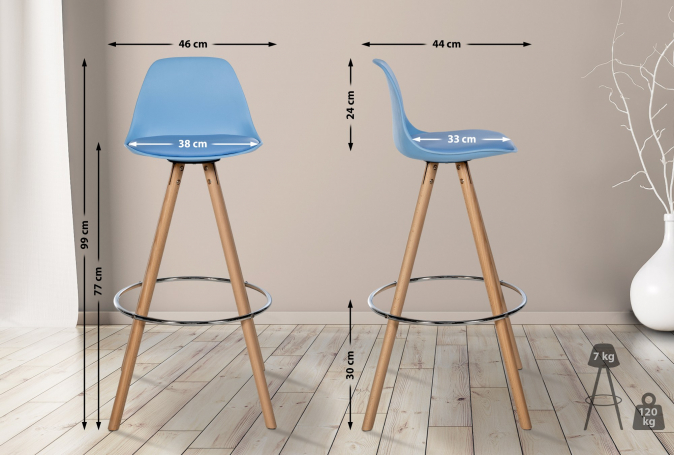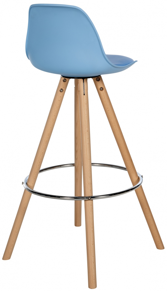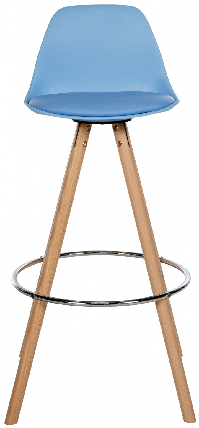 Barová židle Ronin syntetická kůže, / podnož kulatá přírodní podnož /, modrá