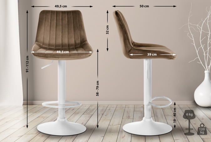Barová židle Toni samet bílá, hnědá | Hnědá | 3 289 Kč