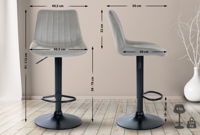 Barová židle Toni samet černá, šedá | Šedá | 2 914 Kč