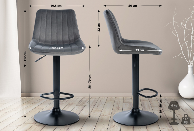 Barová židle Toni samet černá, tmavě šedá | Tmavě šedá | 3 289 Kč
