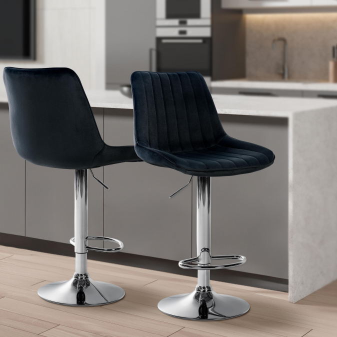 Barová židle Toni samet chrom, černá | Černá | 3 289 Kč