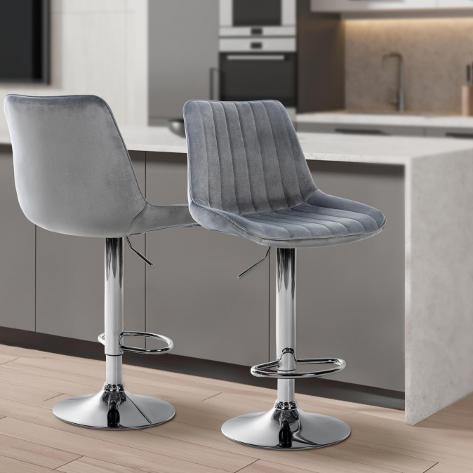 Barová židle Toni samet chrom, šedá | Šedá | 3 289 Kč