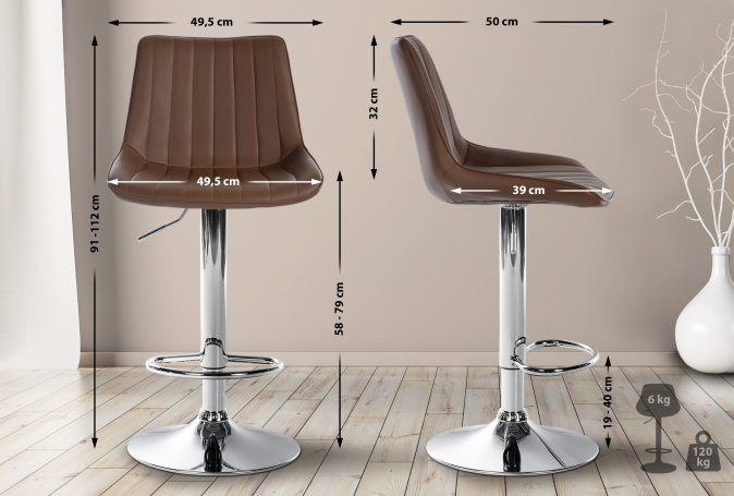 Barová židle Toni syntetická kůže, chrom, hnědá | Hnědá | 3 372 Kč