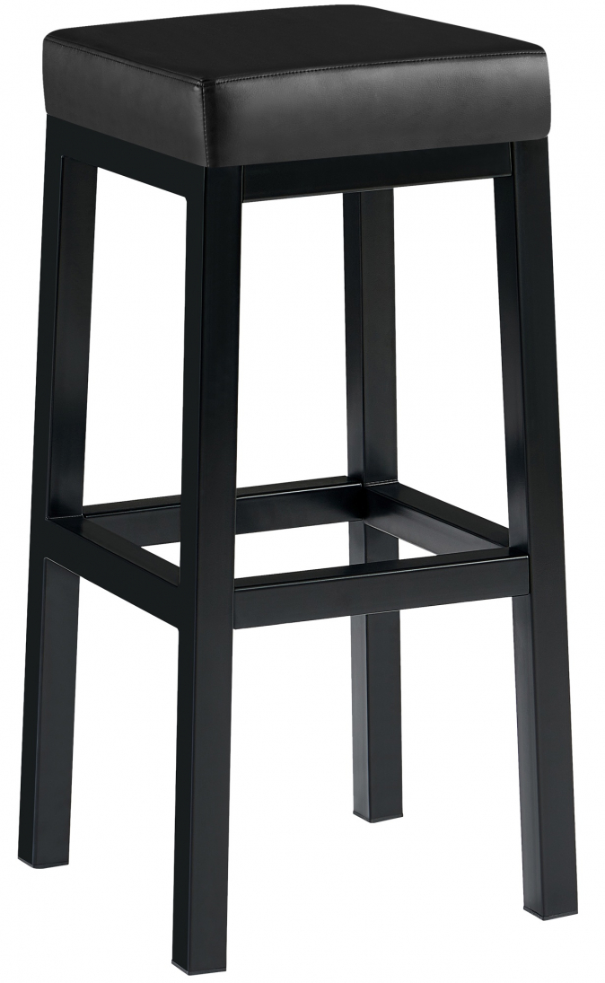 Čtvercový sedák barové židle je pohodlný i bez područek a opěradla. To zajišťuje čalounění, které je na přání potaženo látkou nebo umělou kůží.