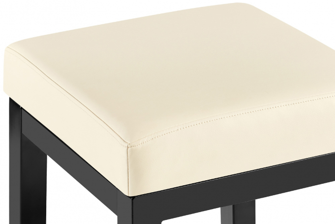 Čtvercový sedák barové židle je pohodlný i bez područek a opěradla. To zajišťuje čalounění, které je na přání potaženo látkou nebo umělou kůží.
