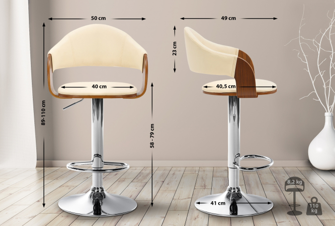 - Barovou stoličku lze snadno výškově nastavit a otáčet o 360 stupňů, takže je ideální pro nalezení ideální polohy k sezení. Pro větší pohodlí má barová židle integrovanou opěrku nohou, která podporuje pohodlné a vzpřímené sezení.