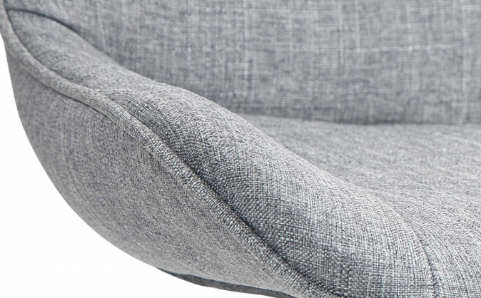 Kovový rám a trubková základna zajišťují stabilitu a odolnost. Integrovaná podnožka se přizpůsobuje výšce sedadla a poskytuje dodatečnou oporu. Látkový potah je odolný a nabízí pohodlné sezení. Chrániče podlahy chrání před poškrábáním.