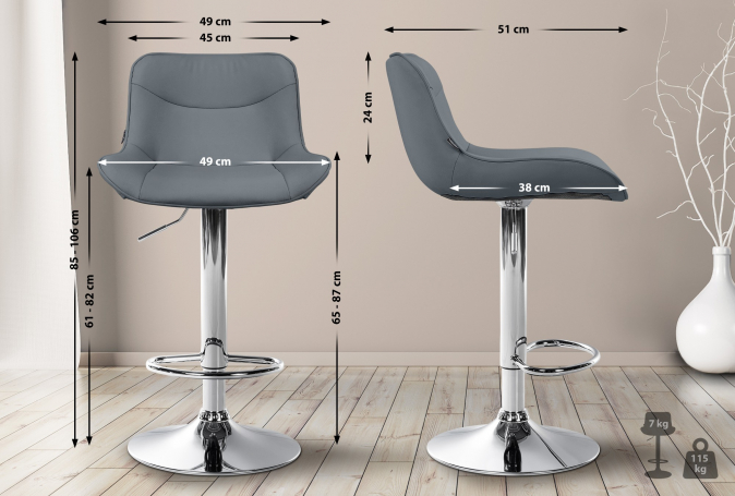 Barová židle Voronei syntetická kůže, chrom, šedá | Šedá | 3 080 Kč