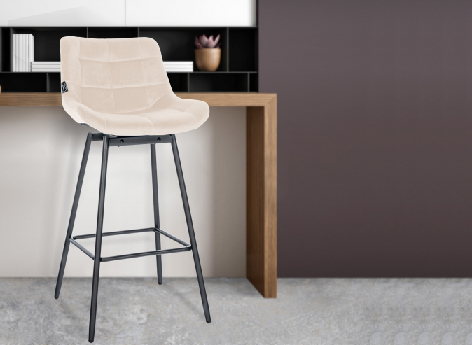 S otočnou barovou židlí Weron získáte nový rozměr flexibility. Tato barová židle kombinuje elegantní design s inteligentní technologií - sedák se otáčí až o 90 stupňů doleva a doprava a automaticky se vrací do výchozí polohy. Ideální pro dynamické sezení na společenských akcích nebo v hektickém prostředí kuchyně. Elegantní sametový potah s prošívaným vzorem v kombinaci s čalouněným opěradlem zajišťuje maximální pohodlí. Robustní rám se čtyřmi nohami poskytuje barové židli nejen stabilní základnu, ale je doplněn chrániči podlahy, které chrání vaši podlahu před poškrábáním. Tato otočná barová židle nabízí stylovou funkčnost a je přínosem pro každý moderní interiér, ať už jde o rychlou snídani, nebo večerní odpočinek.