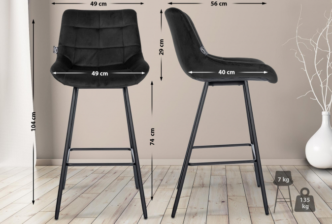 Barová židle Weron samet, černá | Černá | 3 164 Kč
