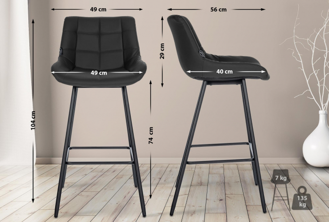 Barová židle Weron ztělesňuje styl a stabilitu v dokonalé harmonii. Je vybavena elegantním prošívaným vzorem v sametovém nebo koženkovém čalounění a je ozdobou každého baru nebo kuchyňského ostrůvku. Pohodlné čalounění spolu s ergonomickým opěradlem slibuje výjimečně pohodlné sezení. Pevný čtyřnohý rám zajišťuje potřebnou stabilitu a je vybaven chrániči podlahy. Integrovaná opěrka nohou dále zvyšuje komfort sezení a činí z barové židle Weron ideální volbu pro dlouhé hodiny strávené ve společnosti. Ať už při komerčním využití nebo v domácnosti, tato barová židle slibuje dlouhou životnost a zaujme svými vlastnostmi, které se snadno udržují.
