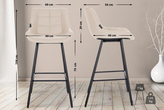 Barová židle Weron ztělesňuje styl a stabilitu v dokonalé harmonii. Je vybavena elegantním prošívaným vzorem v sametovém nebo koženkovém čalounění a je ozdobou každého baru nebo kuchyňského ostrůvku. Pohodlné čalounění spolu s ergonomickým opěradlem slibuje výjimečně pohodlné sezení. Pevný čtyřnohý rám zajišťuje potřebnou stabilitu a je vybaven chrániči podlahy. Integrovaná opěrka nohou dále zvyšuje komfort sezení a činí z barové židle Weron ideální volbu pro dlouhé hodiny strávené ve společnosti. Ať už při komerčním využití nebo v domácnosti, tato barová židle slibuje dlouhou životnost a zaujme svými vlastnostmi, které se snadno udržují.