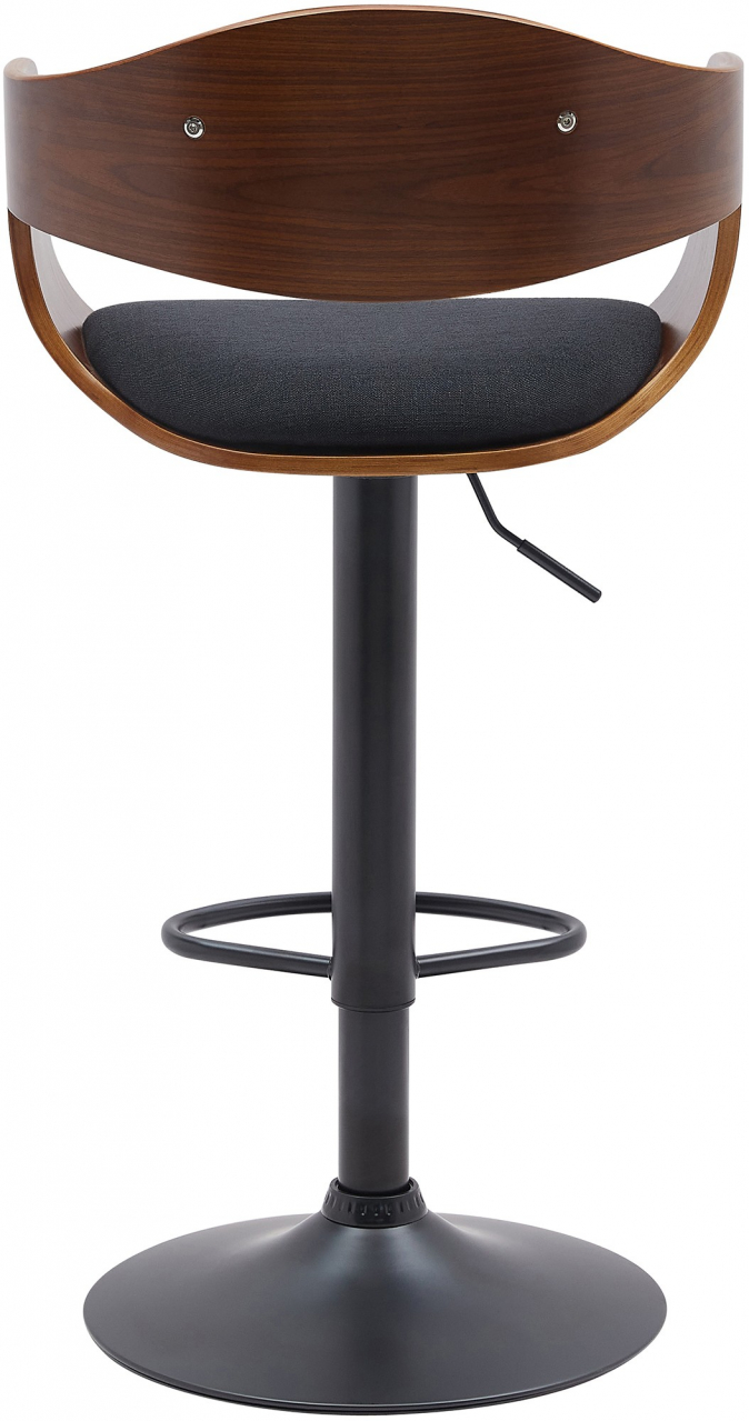 Barová stolička stojí na robustním kovovém rámu v matné černé barvě. Barová židle je plynule výškově nastavitelná pomocí plynového zdvihu, a proto ji lze individuálně přizpůsobit libovolné výšce postavy a pultu. Integrovaná opěrka nohou přispívá k rovnému a vzpřímenému sezení.