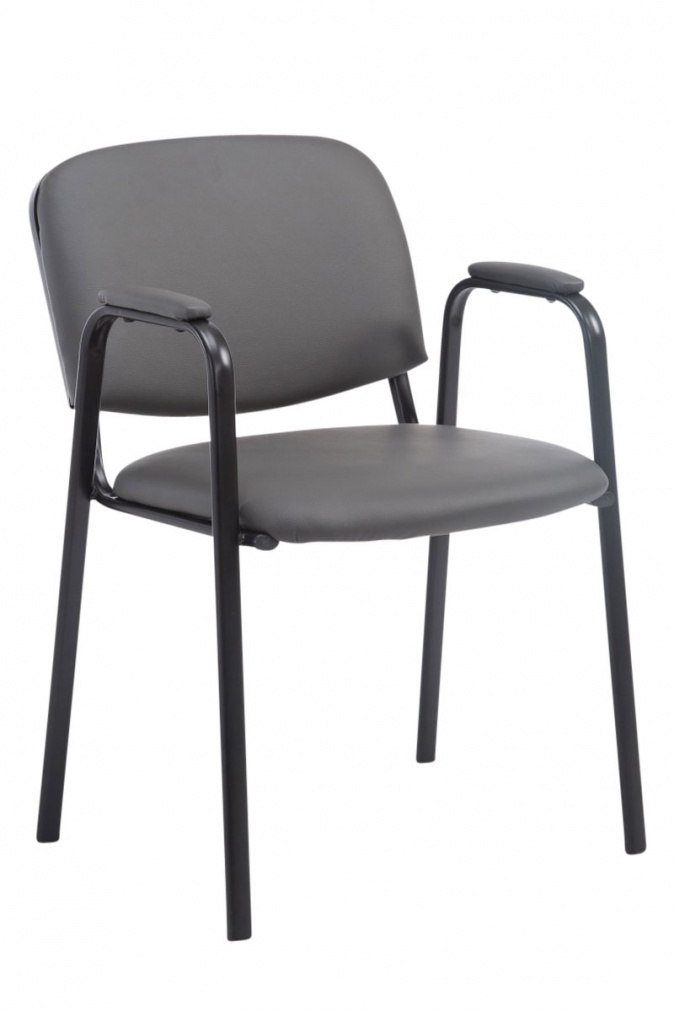 Čalouněný sedák, opěrák a pohodlné područky, potažené snadno udržovatelnou umělou kůží, nabízejí dlouhotrvající příjemné posezení. Díky čtyřnohému rámu z matného černého kovu je židle stabilní a pevná - s maximální nosností 120 kg.