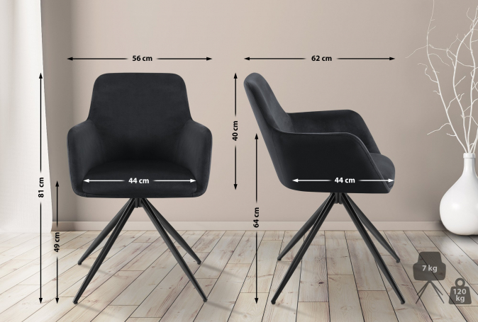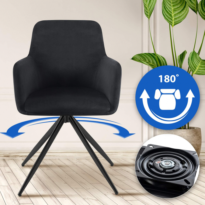 sedáku, opěráku a područek je klíčové pro pohodlné sezení. Skořepina sedáku má elegantní sametový potah. Takzvaná otočná funkce zajišťuje, že se sedadlo může otáčet v rozsahu 180 stupňů, což poskytuje další volnost pohybu.
