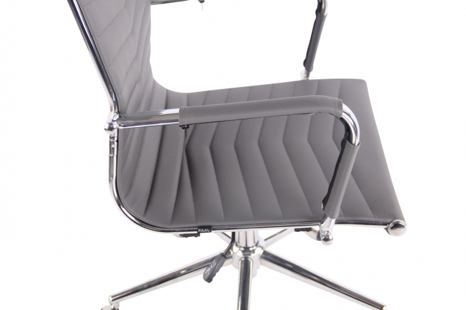 Tato kancelářská židle Barley zaujme nejen svým moderním vzhledem, ale nabízí také bezkonkurenční pohodlí. Otočná židle je k dispozici s čalouněním z umělé nebo pravé kůže a je obzvláště snadno čistitelná. Výška sedáku je navíc plynule nastavitelná a zaručuje ergonomické sezení. Kancelářská židle je také vybavena houpacím mechanismem, který zajišťuje větší volnost pohybu. Stabilitu zaručuje kovový rám chromového vzhledu. Pět hladce se pohybujících koleček usnadňuje pojezd po podlaze - ať už na tvrdé, nebo kobercové podlaze. Elegantní chromovaný rám a robustní zakřivené područky dodávají celku něco navíc a dotvářejí jeho design.