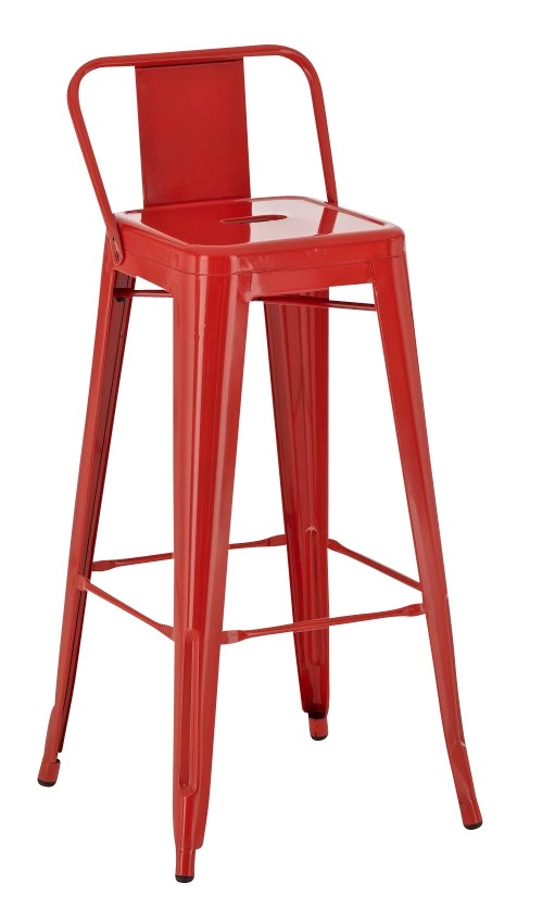 Kovová barová židle Factory s opěrkou, výška 77 cm, červená | Červená | 2 954 Kč