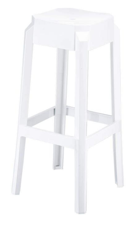 S výškou sedáku 75 cm a zavinovací opěrkou nohou nabízí zvláštní pohodlí. Pultová stolička je stohovatelná, takže ji lze skladovat prostorově úsporným způsobem. Barová židle je vyroben buď z kvalitního lesklého nylonu nebo čirého, průhledného polykarbonátu.