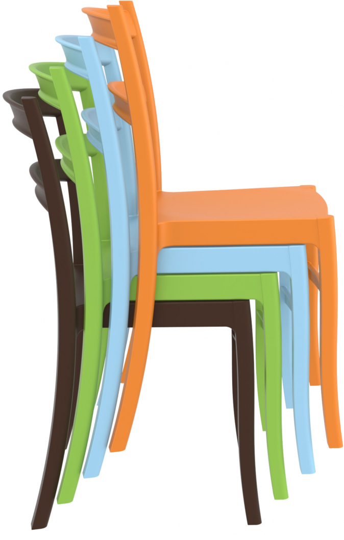 Stohovatelná konstrukce a nízká hmotnost umožňují prostorově úsporné skladování a snadné přemisťování. Stohovací židle má jednoduchý a strohý vzhled. Harmonicky proto zapadne do každého prostředí.